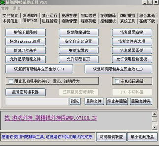 密码读取器:几乎可以读取网页或一些登录软件(QQ除外)被隐藏的密码信息,方便网吧经营者查看被掩盖的密码。