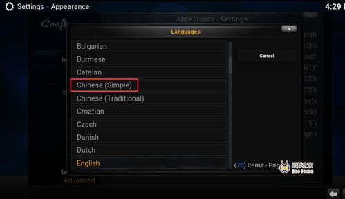 通过以上步骤,你就可以轻松将Kodi设置为中文界面,享受中文影视世界带来的乐趣。快来试试吧,让你的Kodi之旅更加顺畅!